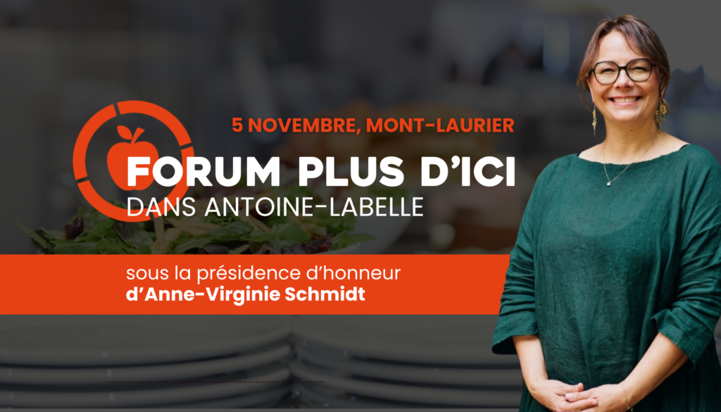 Annonce du Forum Plus d’ici – Antoine-Labelle, un événement régional majeur qui se tiendra le 5 novembre 2025, réunissant les acteurs du secteur bioalimentaire et du milieu HRI afin de favoriser l’approvisionnement local à travers conférences, ateliers collaboratifs et réseautage.